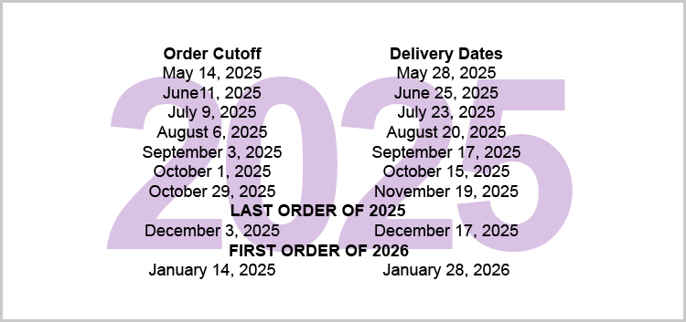 2025 Ordering Schedule